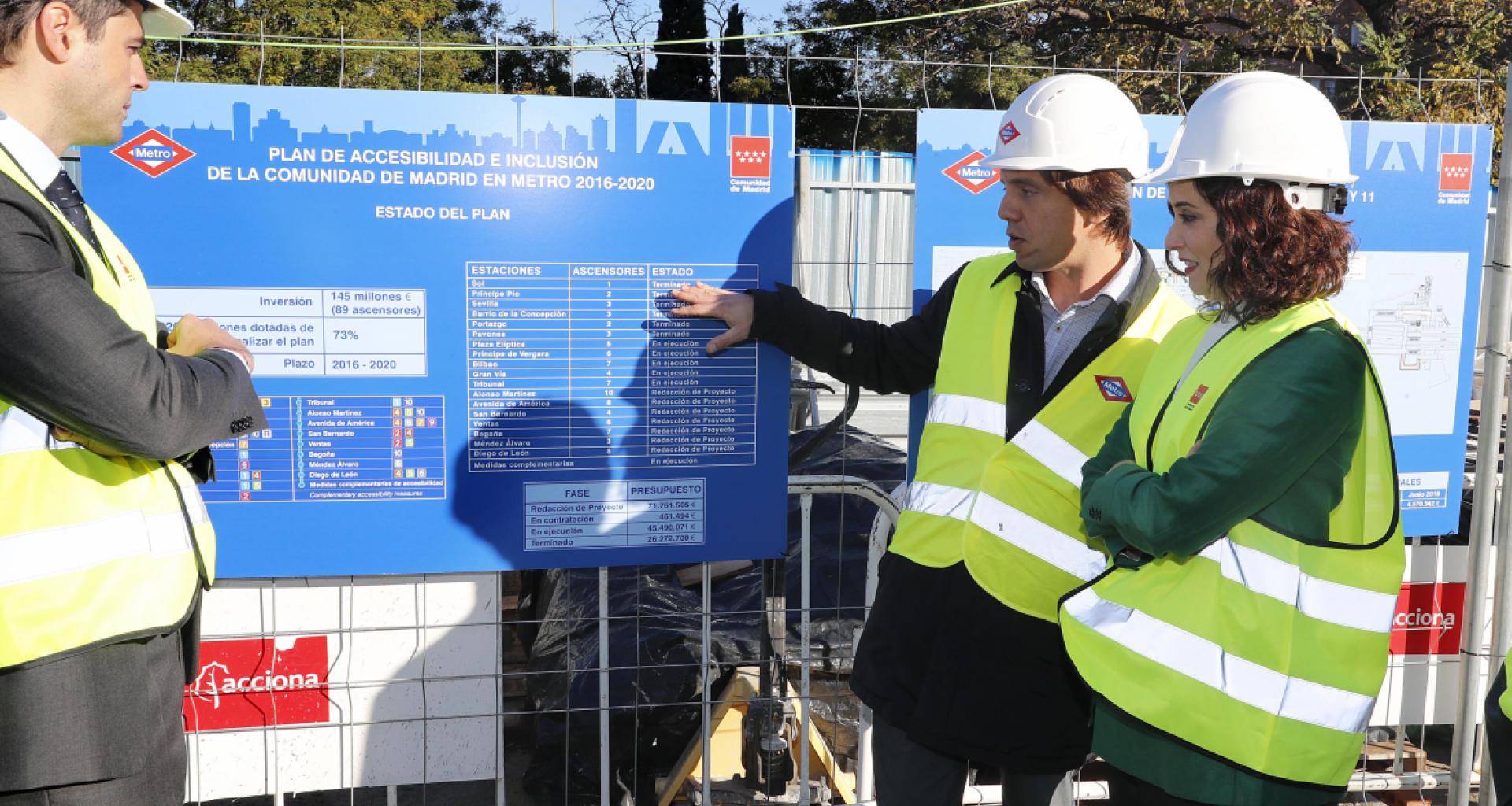 Díaz Ayuso ha realizado este anuncio tras visitar las obras para la instalación de cinco ascensores en la estación de Metro de Plaza Elíptica, en el marco del Plan de Accesibilidad e Inclusión del suburbano madrileño. La presidenta ha estado acompañada por el vicepresidente y consejero de Deportes, Transparencia y portavoz del Gobierno regional, Ignacio Aguado, y por el consejero de Transportes, Movilidad e Infraestructuras, Ángel Garrido.