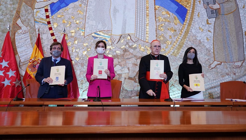 Con motivo de este IV centenario de la canonización del patrón de la ciudad, el Ayuntamiento de Madrid organizará, junto al Arzobispado, la Comunidad de Madrid y la Delegación del Gobierno en Madrid, una amplia programación de actividades. Hoy, el alcalde de Madrid, José Luis Martínez-Almeida, ha suscrito el acuerdo que regirá el desarrollo del Año Santo Jubilar San Isidro Labrador junto al arzobispo de Madrid, cardenal Carlos Osoro, la presidenta de la Comunidad, Isabel Díaz Ayuso, y la delegada del Gobierno, Mercedes González.