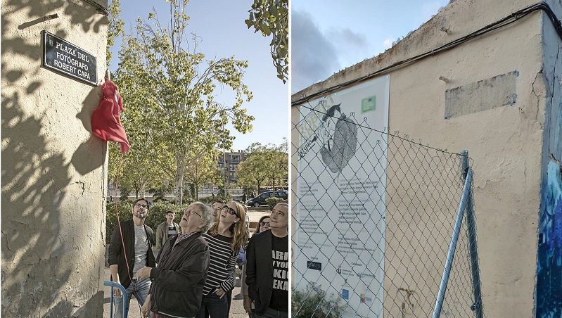 Roban la placa de la plaza dedicada en Madrid al fotógrafo Robert Capa