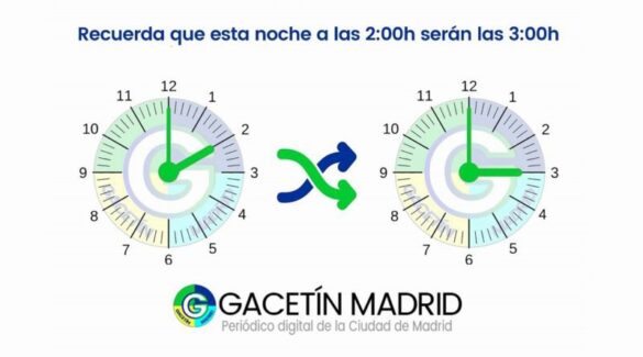 La noche de este sábado 29 a domingo 30 de marzo finaliza la “hora de invierno”. Los relojes deberán adelantarse una hora, a las 02:00 horas serán las 03:00 horas, y ello en cumplimiento de la Directiva Comunitaria 2000/84/ CE que rige el denominado “Cambio de Hora”.