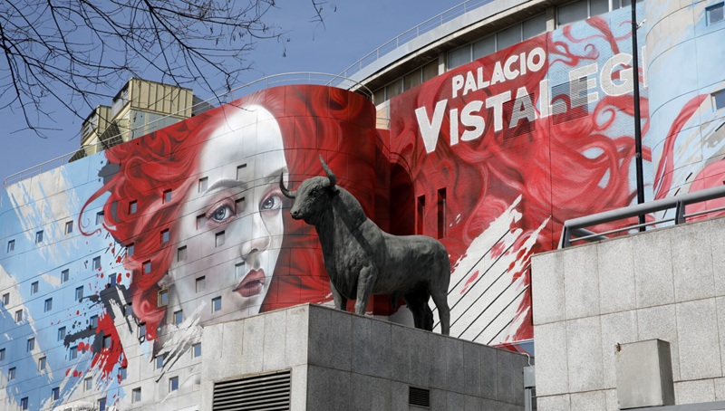 Carabanchel suma una obra de arte más a su espacio urbano. Firmada por el artista madrileño Sfhir, seudónimo de Hugo Lomas, La musa de Vistalegre se ha convertido con sus 18 metros de altura y 66 de anchura en el mural más grande de España. Carlos Izquierdo, concejal del distrito, ha inaugurado hoy esta obra, pintada sobre la fachada del Palacio de Vistalegre, que formará parte de la ‘Ruta del Arte’, un recorrido cultural que articulará el distrito a través de dos grandes ejes temáticos.
