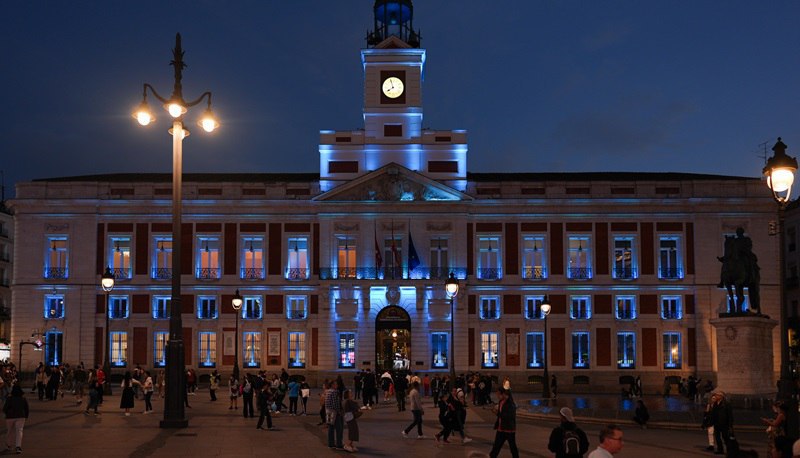 La Real Casa de Correos, sede de la Presidencia de la Comunidad de Madrid en la céntrica Puerta del Sol, se iluminará esta noche con los colores de la bandera de la Ciudad del Vaticano (blanco y amarillo) en recuerdo de Su Santidad el Papa Francisco.