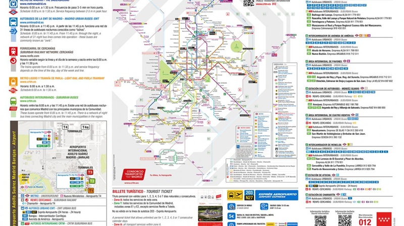Esta nueva edición detalla también los horarios de los intercambiadores e incluye planos esquemáticos de la red de Metro, Cercanías y las terminales del Aeropuerto Adolfo Suárez Madrid Barajas.