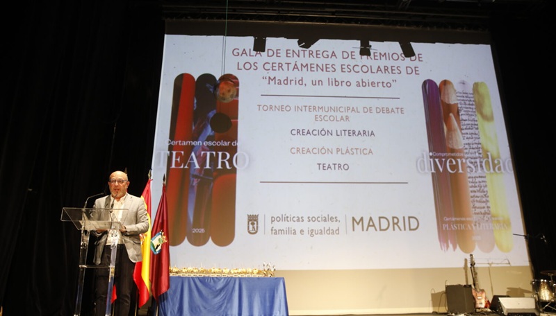 El Ayuntamiento de Madrid ha celebrado hoy la entrega de premios de los Certámenes Escolares 2025 que, en su XXXII edición, han promovido la expresión artística entre más de 1.500 jóvenes de 106 centros de Educación Primaria, Secundaria, Bachillerato y Formación Profesional de la ciudad. El delegado de Políticas Sociales, Familia e Igualdad, José Fernández, ha destacado que “educar no solo es enseñar asignaturas, sino enseñar a pensar, a expresar y a convivir” y ha puesto en valor que el Consistorio “apueste por una educación que sale de las aulas para entrar en la vida real”.