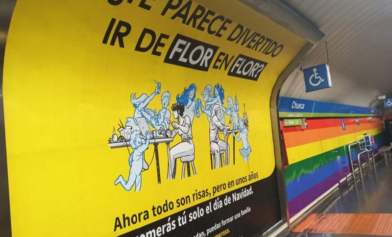 La Asociación de Familias Numerosas de Madrid (AFNM) ha lanzado una nueva campaña bajo el lema ‘¿Te parece divertido ir de flor en flor?’ que ha traído la polémica a Metro de Madrid, en cuyas estaciones se puede ver este miércoles, 25 de junio, los carteles propagandísticos.