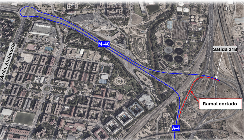 - Itinerario alternativo 2: Desvío de tráfico del anillo interior de la Autopista M-40 hacia Autovía A-4 sentido Córdoba por salida 23 del anillo interior de la M-40 y posterior cambio de sentido en la glorieta de la Avda. de Andalucía.