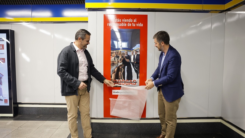 La Comunidad de Madrid instalará 200 carteles-espejo en 100 estaciones de la red de Metro, para informar y concienciar a los viajeros, especialmente a los más jóvenes, sobre los efectos nocivos de las drogas. Estos primeros soportes se colocarán en Alonso Martínez, Bilbao, Legazpi, Moncloa y Tribunal y en los intercambiadores de Avenida de América, Plaza de Castilla, Plaza Elíptica, Valdebebas y Moncloa.