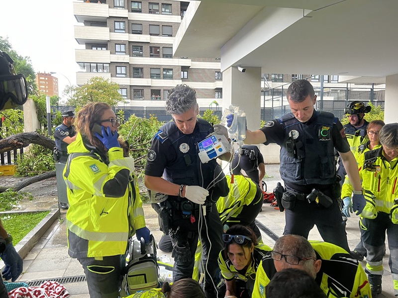 Los Bomberos del Ayuntamiento de Madrid han procedido a rescatar a la víctima atrapada bajo el tronco, iniciando las pertinentes maniobras de reanimación cardiopulmonar (RCP) avanzadas, que han sido continuadas por los sanitarios del SAMUR-Protección Civil hasta revertir la parada.