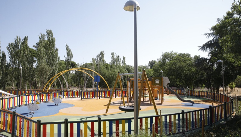 La intervención realizada en esta zona del distrito de Moncloa-Aravaca incluye la ejecución de una red de caminos peatonales, pavimentados con materiales reciclados y técnicas respetuosas con el medio ambiente que facilita el acceso a diversas zonas: estanciales, infantiles y ajardinadas.