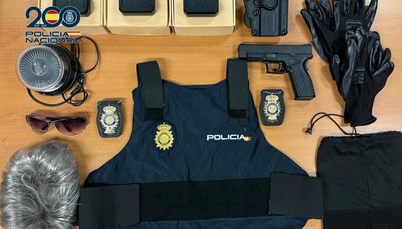 Avanzadas las pesquisas policiales se pudo identificar al presunto responsable de los hechos, por lo que el pasado 25 de junio se estableció un dispositivo policial especial que culminó con la localización y detención de esta persona. En el registro domiciliario los investigadores incautaron un rotativo luminoso, dos placas policiales con su portaplaca y colgante, una funda exterior de chaleco con inscripción policial, un arma corta con su cargador y tres balizas con GPS.