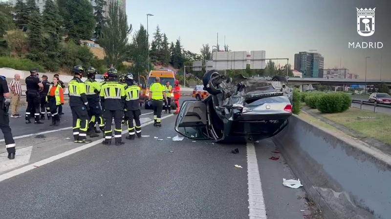 Los hechos han ocurrido pasadas las 7 de la tarde de este sábado a la altura del punto kilométrico 4 de la M-30, calzada exterior. Por causas que aún se investigan, un turismo ha colisionado contra otro, ha golpeado el muro que separa ambas calzadas y ha quedado volcado.