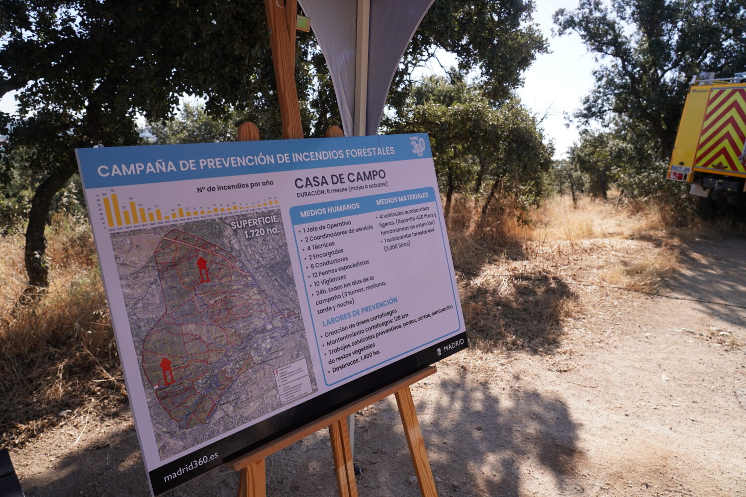 Este año, el servicio de defensa contra incendios para la protección de los parques forestales se ha activado antes que en otras campañas. Se puso en marcha el pasado 21 de abril con 53 efectivos que garantizan durante las 24 horas del día la vigilancia de las 1.900 hectáreas que forman la Casa de Campo (1.700 hectáreas) y la parte del Área Forestal de Tres Cantos que depende del Ayuntamiento de Madrid.