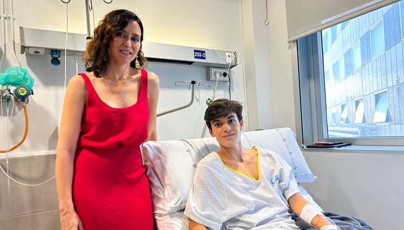 La presidenta de la Comunidad de Madrid, Isabel Díaz Ayuso, ha visitado hoy en el Hospital La Paz al novillero Sergio Rollón, que el pasado 12 de julio sufrió una grave cogida en la final a tres en la plaza de Valdetorres de Jarama.