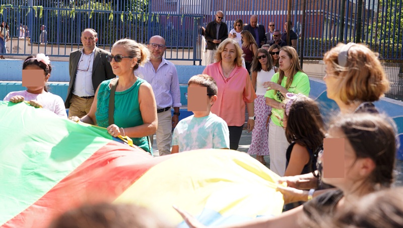 La vicealcaldesa de Madrid y alcaldesa en funciones, Inma Sanz, junto al delegado de Políticas Sociales, Familia e Igualdad, José Fernández, y el concejal de Moratalaz, Nacho Pezuela, ha visitado esta mañana el centro en el que se ha desarrollado este encuentro intergeneracional que contribuye a generar experiencias compartidas entre ambos grupos de edad, enriquece la enseñanza de los menores y ofrece a los mayores una oportunidad más de seguir aportando valor a la sociedad.