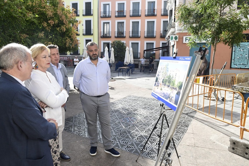 La delegada de Obras y Equipamientos del Ayuntamiento de Madrid, Paloma García Romero, acompañada por el concejal de Centro, Carlos Segura, ha visitado hoy el desarrollo de las obras de remodelación de la plaza del Rastrillo y su entorno, en el distrito de Centro.