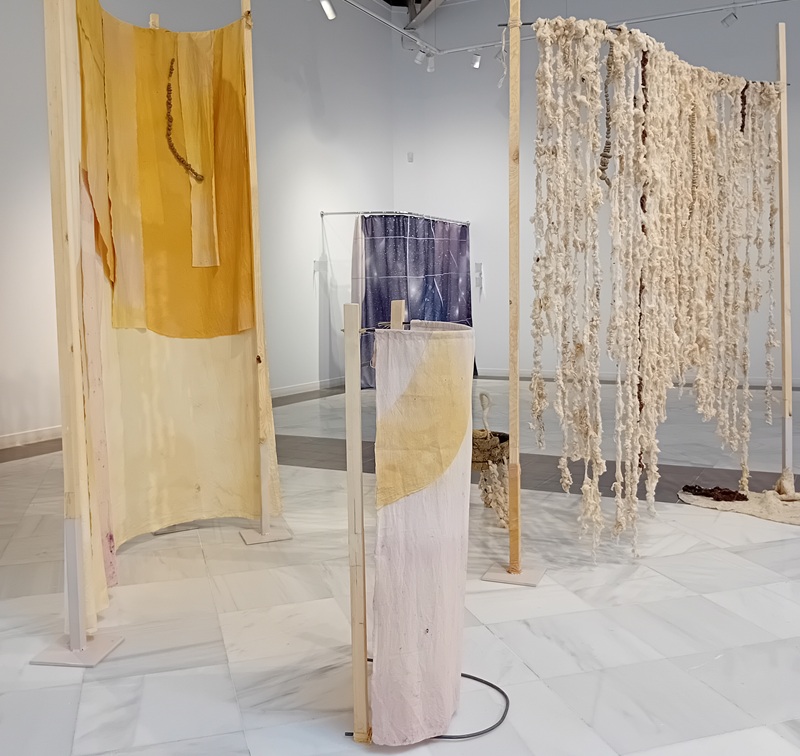 También encontramos propuestas que juegan con lo digital y lo físico, como las de Lola Zoido e Irene Molina, que exploran los límites de la imagen y el espacio virtual. O el trabajo de Nuria López Blanco, que convierte sus instalaciones en sets cinematográficos donde lo cotidiano se vuelve extraño.