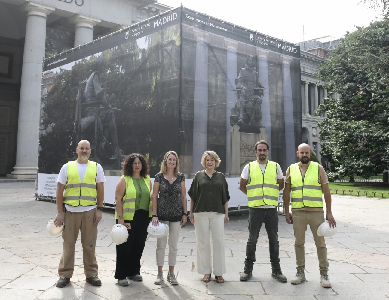 La delegada de Cultura, Turismo y Deporte, Marta Rivera de la Cruz, ha visitado hoy el monumento a Diego Velázquez situado en el paseo del Prado, donde el Ayuntamiento de Madrid está ejecutando una intervención integral de conservación y restauración. Los trabajos, impulsados por la Dirección General de Patrimonio Cultural y Paisaje Urbano, cuentan con un presupuesto de casi 28.000 euros y finalizarán la primera quincena de septiembre.