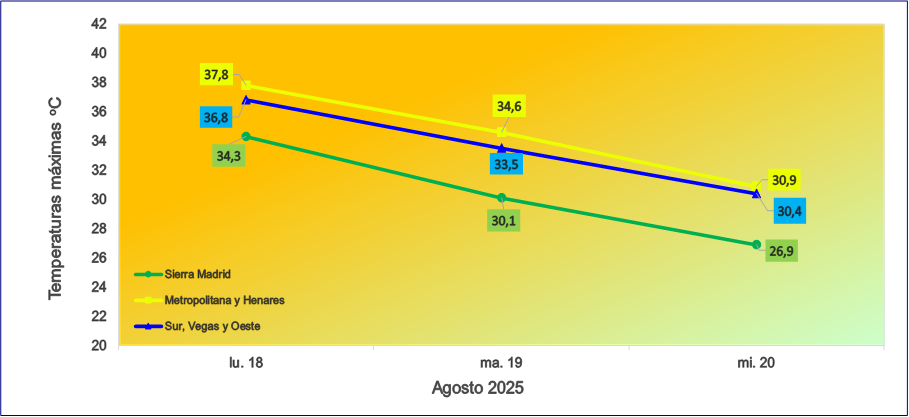 El Gobierno de la Comunidad de Madrid ha desactivado la alerta por calor (nivel 0) conforme al ‘Plan de Vigilancia y Control de los Efectos de las Olas de Calor’ de la Comunidad de Madrid” ante el fuerte descenso de las temperaturas previsto para esta semana, tras activarse el nivel 2 el pasado jueves, 14 de agosto.
