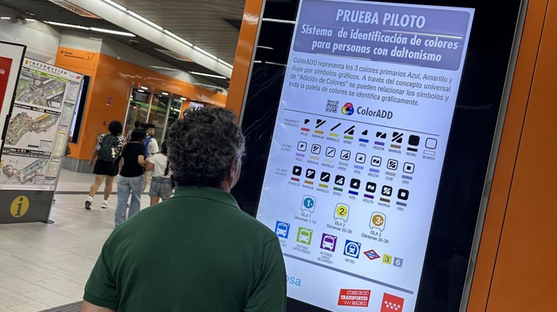 La Comunidad de Madrid ha ampliado el sistema de señalética inclusiva para personas con daltonismo a los intercambiadores de Plaza Elíptica y Plaza de Castilla, tras el éxito del proyecto piloto implantado hace un año en Moncloa. Esta iniciativa, pionera en el transporte público de la región, aplica el sistema ColorADD, un código gráfico que identifica los tres colores primarios, además del blanco y el negro, para facilitar la orientación de usuarios con discromatopsia.
