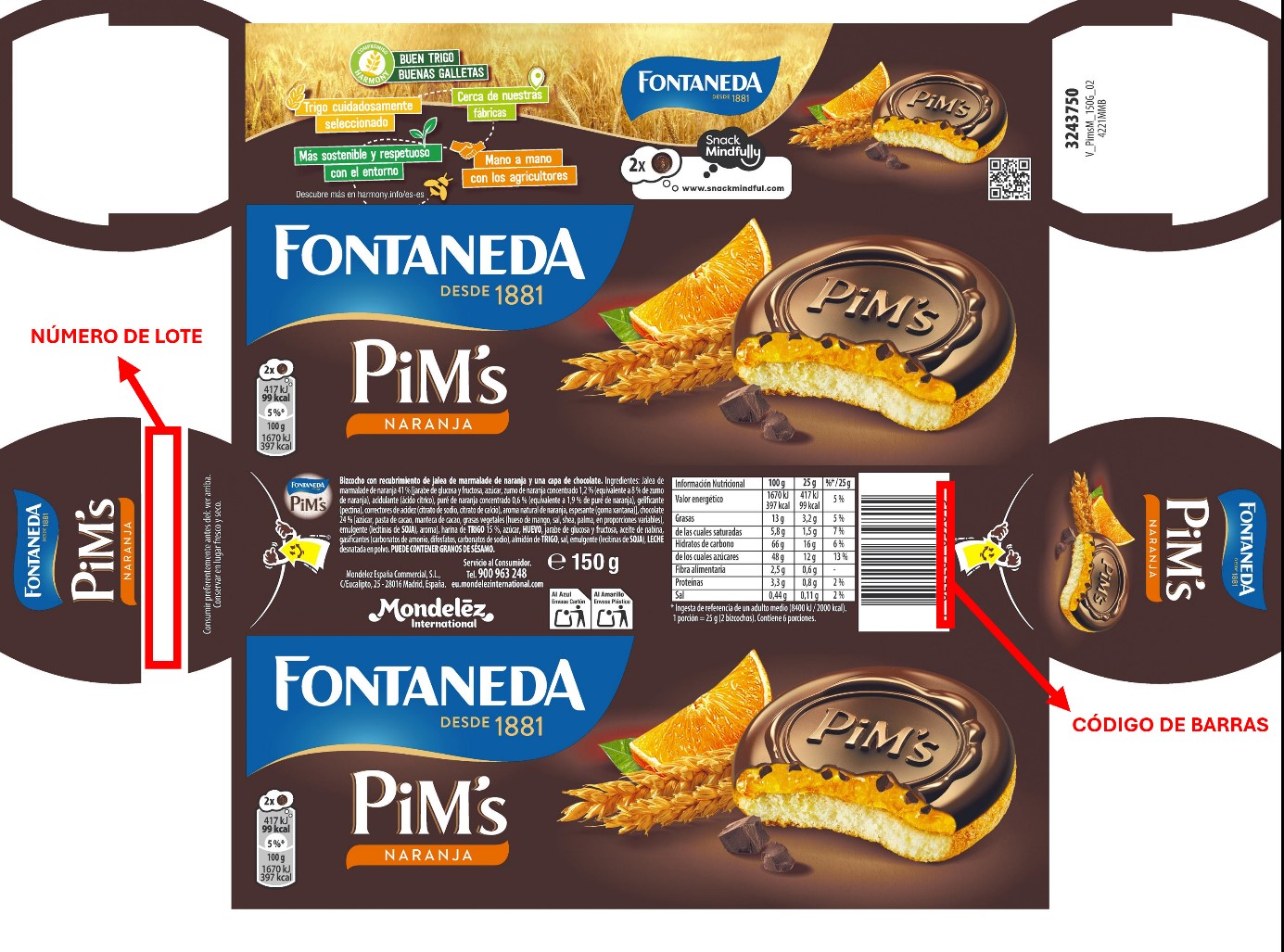La empresa ha publicado información sobre este incidente que puede consultarse en el siguiente enlace: Mondelēz International advierte sobre un lote de las galletas FONTANEDA PIMS 150G NARANJA | Mondelez España