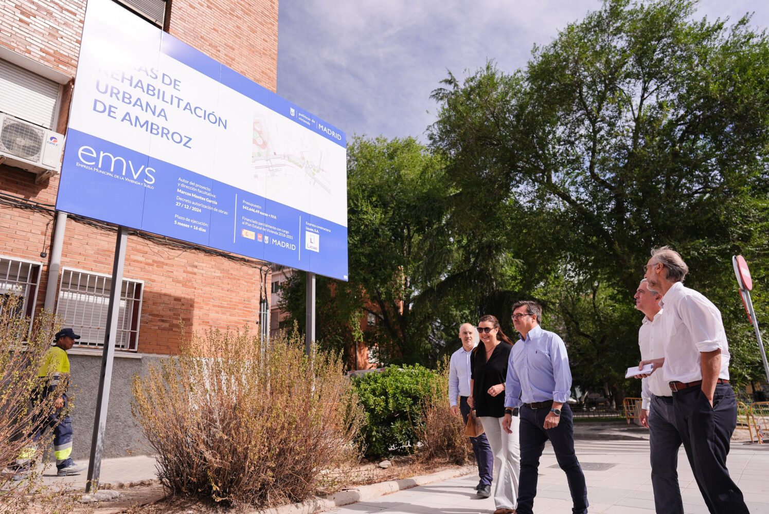 El delegado de Políticas de Vivienda y presidente de la Empresa Municipal de la Vivienda y Suelo (EMVS Madrid), Álvaro González, ha visitado las obras de rehabilitación urbana que EMVS Madrid está llevando a cabo en el barrio de Ambroz, en el distrito de Vicálvaro.