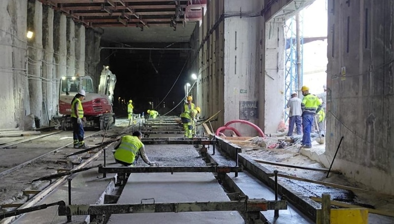 Los trabajos han consistido en el levante del carril desgastado que se encuentra embebido en la losa de hormigón, reconstrucción de la canaleta donde se encuentra el carril, y reposición de la sección levantada con carril nuevo que se confina en la canaleta mediante un polímero que lo soporta de manera continua, reduciendo el ruido y las vibraciones transmitidas por el paso de las circulaciones. Este trabajo requiere la desconexión previa y conexión posterior de todos los elementos de señalización asociados a la vía.