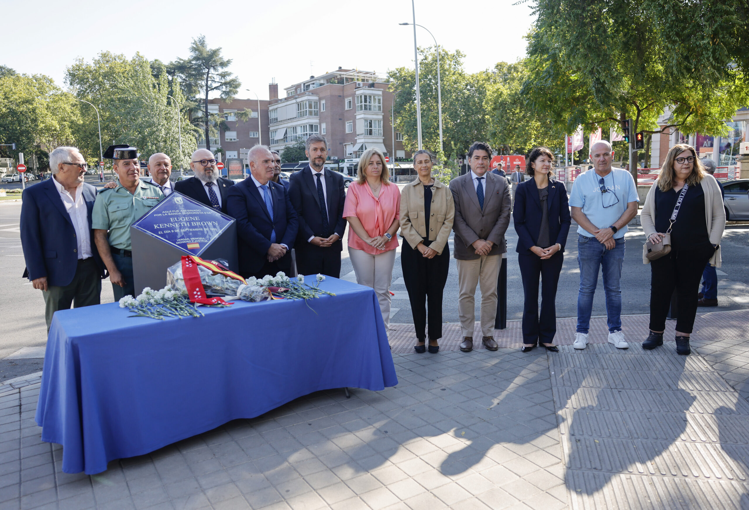 La Comunidad de Madrid ha rendido hoy homenaje a las víctimas del atentado en la Plaza de la República Argentina de 1985, en el que la banda terrorista ETA asesinó al ciudadano estadounidense Eugene Kenneth Brown e hirió a 18 personas, 16 de ellos guardias civiles y dos transeúntes, cuando se cumplen 40 años del trágico siniestro.