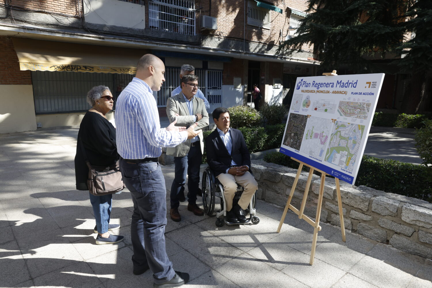 El delegado de Políticas de Vivienda y presidente de la Empresa Municipal de la Vivienda y Suelo de Madrid (EMVS Madrid), Álvaro González, ha recorrido junto al concejal de Moncloa-Aravaca, Borja Fanjul, las calles de la Colonia de Valdezarza donde el Ayuntamiento de Madrid ha puesto en marcha una nueva actuación del Plan Regenera Madrid.