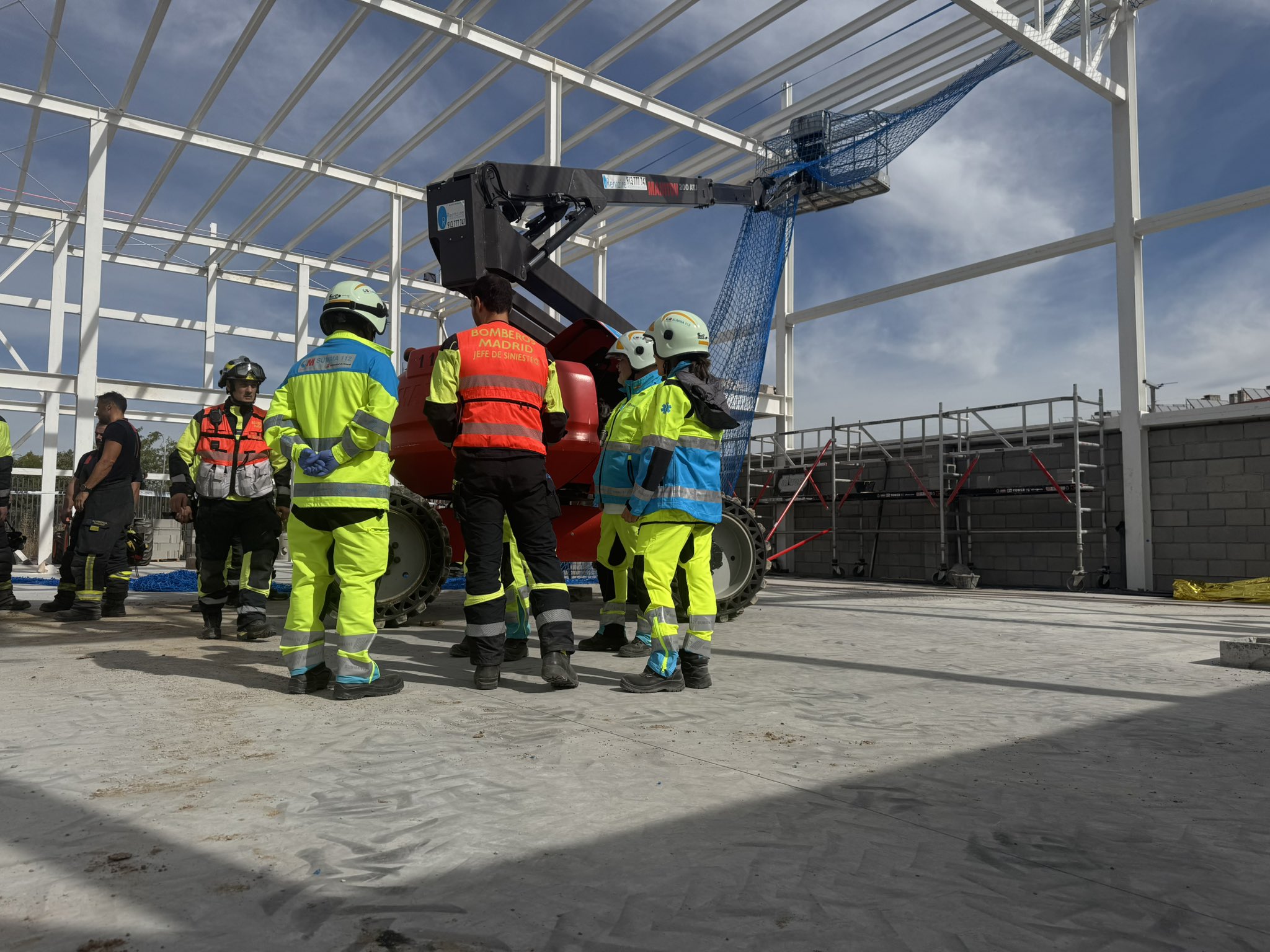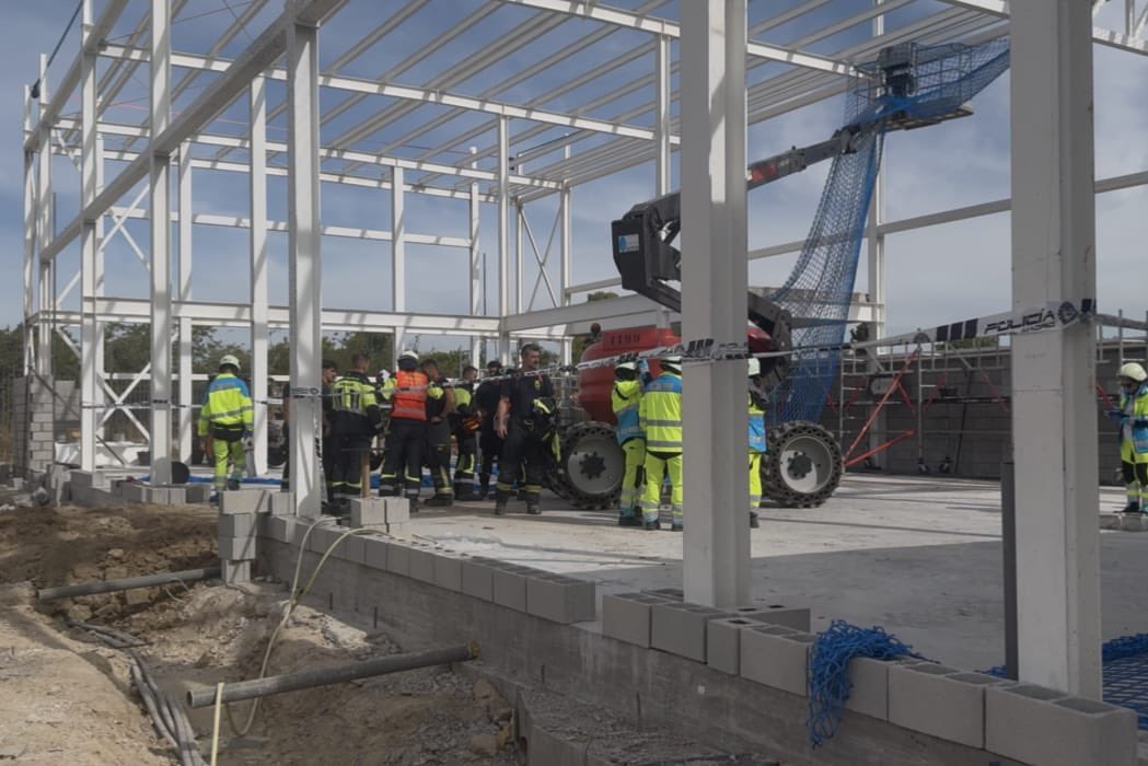 Los hechos han ocurrido minutos después de las 10 de la mañana de este sábado en la construcción de una estructura en la calle de Alhaurín, en Barajas. Por causas que aún se investigan, un operario ha quedado atrapado entre una plataforma elevada y una estructura metálica a 6 metros de altura.