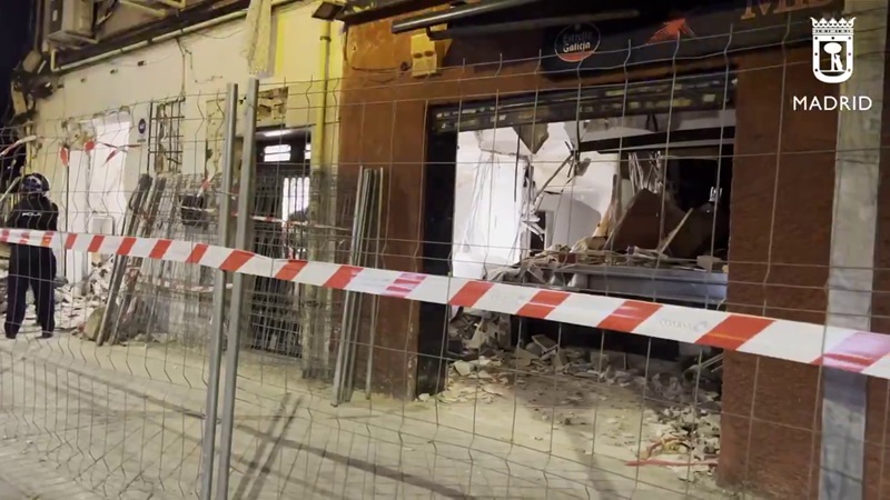 Todo apunta a una explosión de gas, que ha afectado a las viviendas superiores. Hasta 18 dotaciones de los Bomberos del Ayuntamiento de Madrid acudieron a la zona, iniciando el desescombro a mano y rescatando a una de las víctimas, atrapada en el interior del edificio.