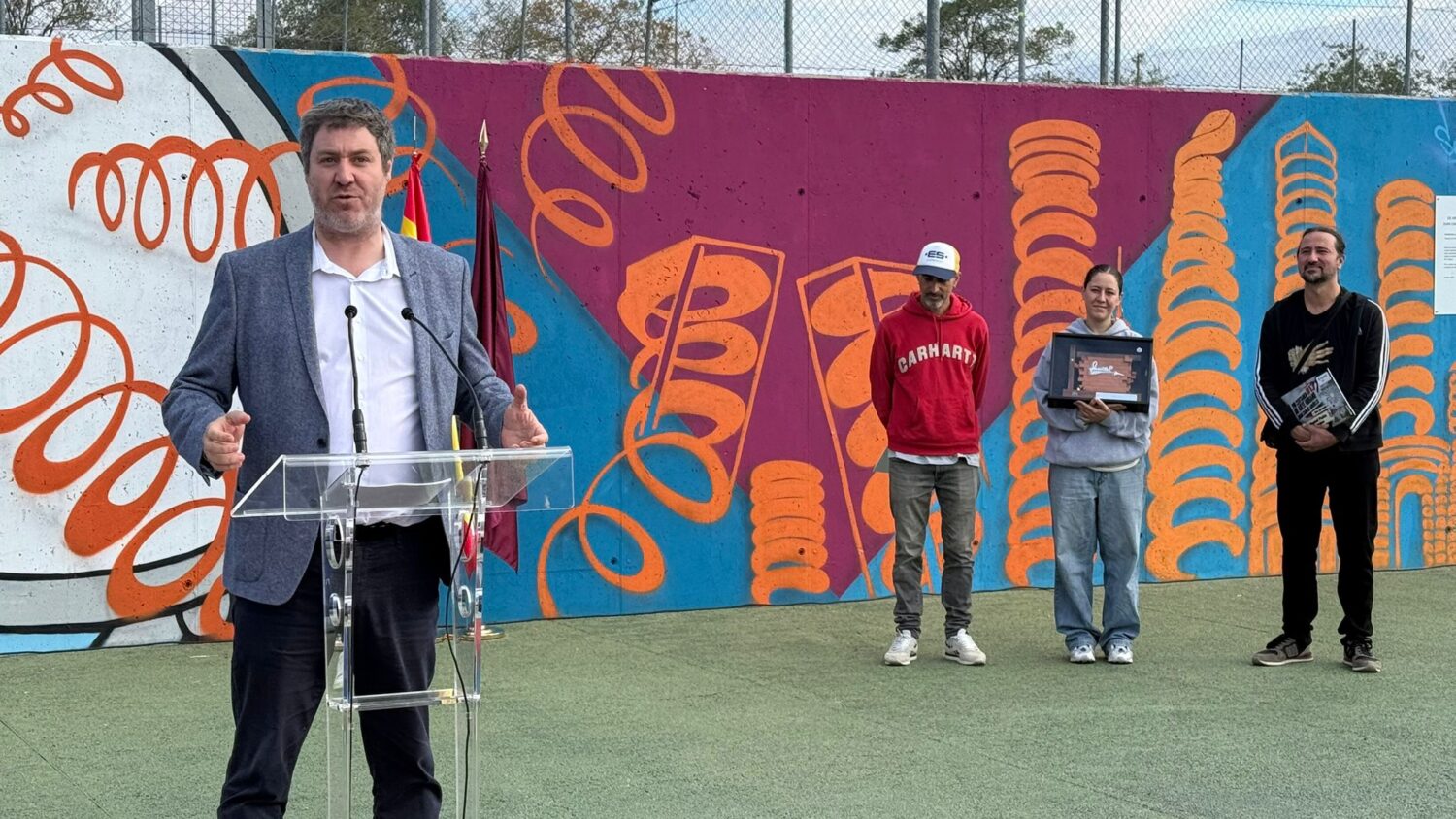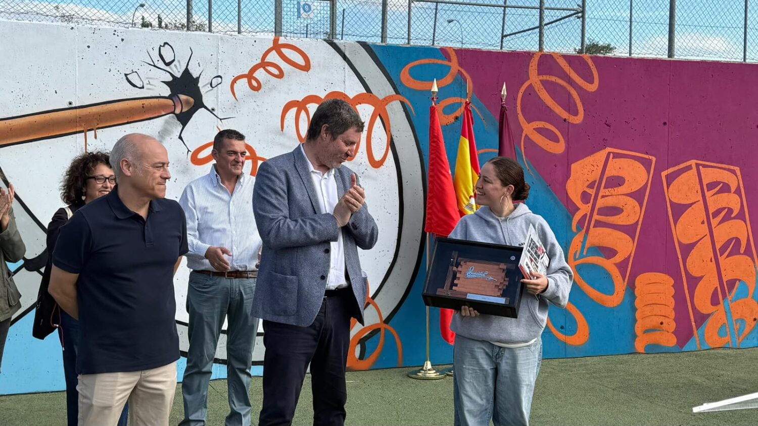 Las pistas de tenis del Centro Deportivo Municipal Gallur han albergado esta mañana la entrega de premios del VIII Certamen de Arte Urbano de Latina Juan Carlos Argüello, ‘Muelle’. El concejal del distrito, Alberto González, ha sido el encargado de entregar estos galardones, en los que ha resultado ganadora, por primera vez, una mujer, Mariona Lihuen Gallar Carracedo, por su obra Muelle, el pulso de la ciudad, ritmo y movimiento, que lucirá en el muro de estas instalaciones deportivas.