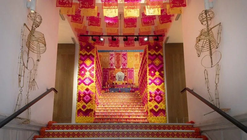 En 2024, la Fundación Casa de México en España estuvo intervenida desde la fachada hasta la segunda planta, pasando por las escaleras y los pasillos. El diseño del altar y la intervención del resto de los espacios estaba basado en el viaje que hacen los difuntos para llegar, es decir, el recorrido del mundo de los muertos al mundo de los vivos y viceversa.