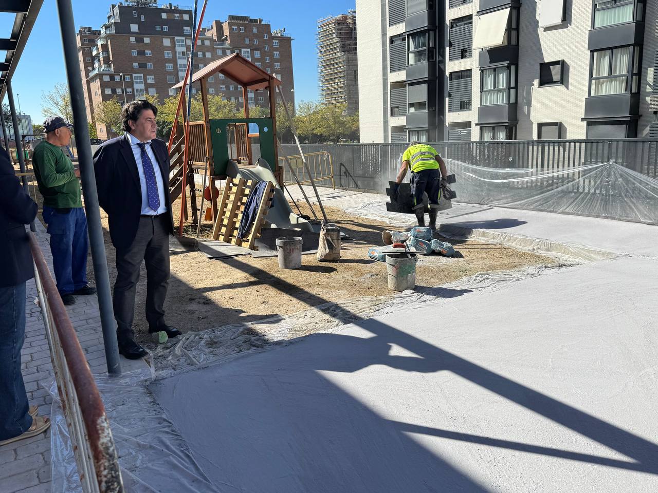 El concejal de Hortaleza, David Pérez, ha visitado hoy las obras que se están llevando a cabo en la Escuela Infantil Las Pléyades, de titularidad municipal, situada en el barrio de Valdebebas, donde se están llevando a cabo trabajos de conservación y mantenimiento con el objetivo de mejorar la seguridad, funcionalidad y confort de sus instalaciones.