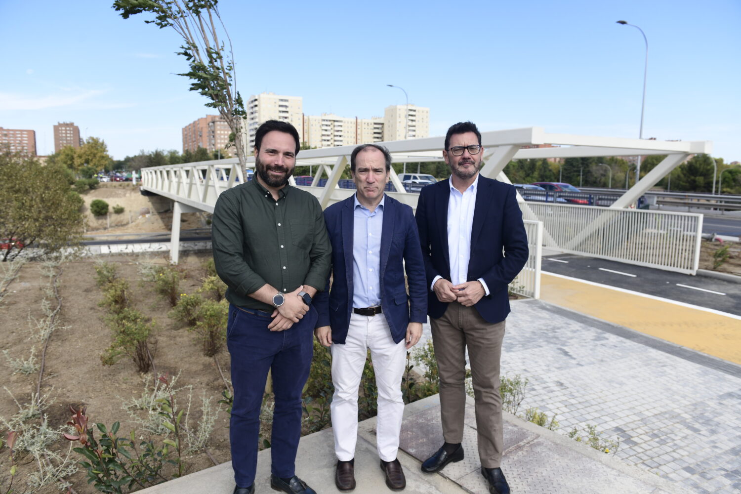 Desde hoy, los vallecanos podrán cruzar la M-40 a pie o en bicicleta de forma segura y accesible, cerrando la brecha que generaba la autovía para los vecinos. El delegado de Urbanismo, Medio Ambiente y Movilidad, Borja Carabante, acompañado por concejal del distrito de Puente de Vallecas, Ángel Niño, y el de Villa de Vallecas, Carlos González, ha abierto este paso para el uso de la ciudadanía y lo ha recorrido para comprobar cómo ha quedado su configuración.