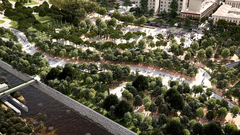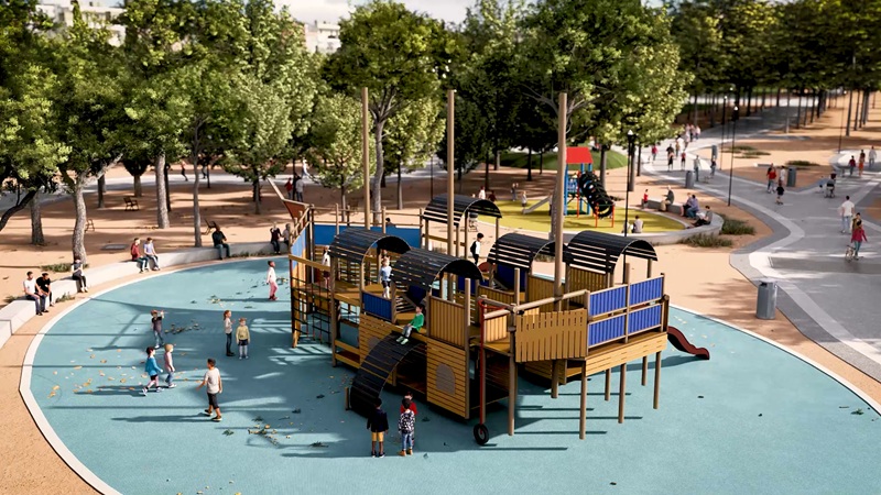 Así, la remodelación del parque, que ocupa 14.300 metros cuadrados de superficie, incorporará áreas de juegos infantiles, paseos con pérgolas y bancos, y dos fuentes elípticas junto al templete de acceso al Metro, además de un barco pirata como elemento central, solicitado por las asociaciones vecinales y familias del entorno. El acceso a la estación podrá realizarse tanto desde la calle como desde el interior del recinto, que se integrará plenamente en el entorno urbano y paisajístico de Madrid Río.