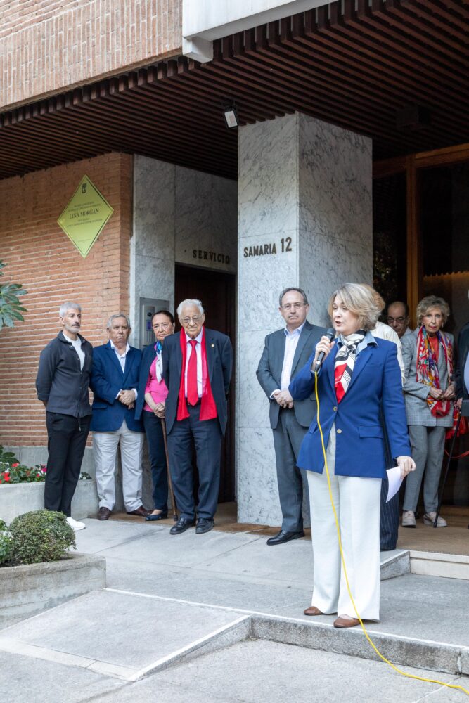 La delegada de Cultura, Turismo y Deporte, Marta Rivera de la Cruz, ha descubierto hoy una placa conmemorativa en homenaje a Lina Morgan en la fachada del edificio donde residió sus últimos años, en la calle de Samaria, 12, en el distrito de Retiro. Con este gesto, Madrid recuerda a una de las intérpretes más queridas del teatro español, icono de la comedia popular y del género de revista.