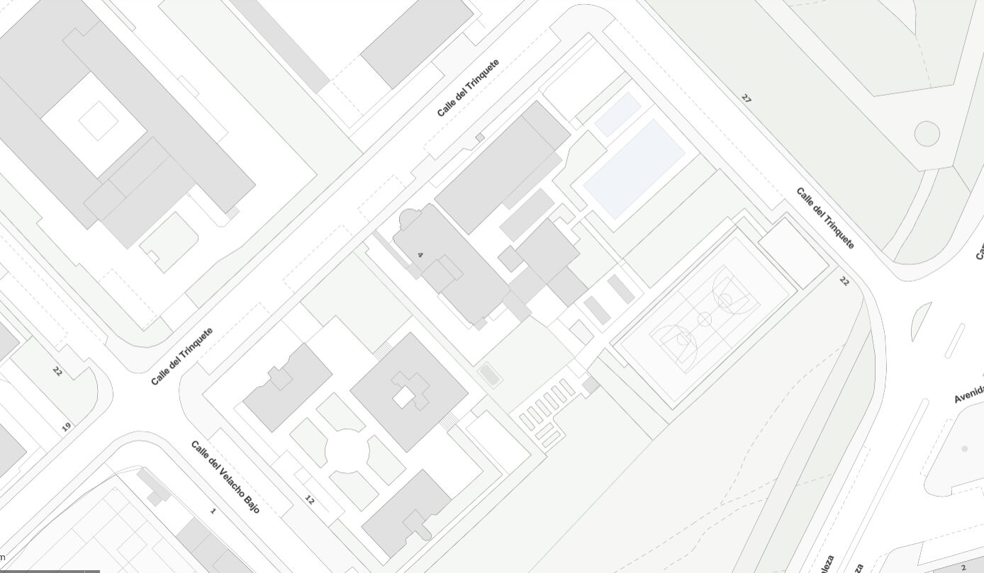Actualmente, la parcela de Velacho Bajo, número 2 se encuentra destinada a zona verde. La parcela de la calle del Velacho Bajo, número 4, calificada de equipamiento básico, se utiliza como aparcamiento sin pavimentar. Las del Trinquete, 20 y del Velacho Bajo, 4B son de equipamiento privado y se encuentran sin edificar.