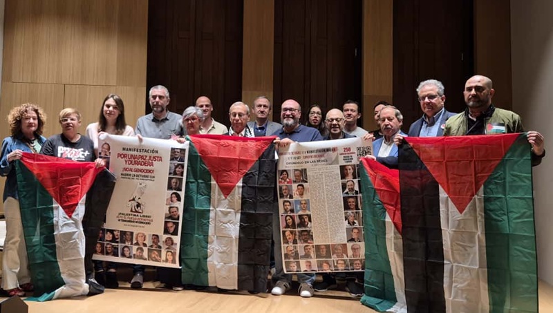 “Hace un año salimos a la calle en 50 poblaciones, ahora ya son 250 y esperamos que la manifestación del domingo sea una celebración cívica y pacífica, y una apuesta por una paz que dure y que sea justa para Palestina”. Entre las organizaciones firmantes se encuentra también UGT, con la firma de Pepe Álvarez, además de otros sindicatos como USO, Fetico o la FeSP. Pero también grupos políticos como Coalición Canaria, PNV, PSOE y Sumar.
