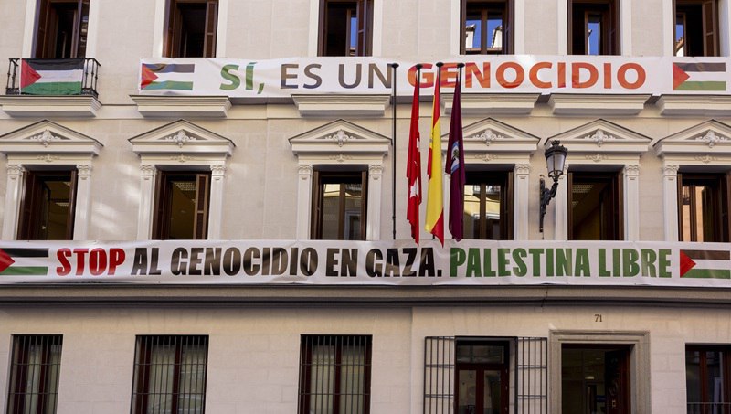 En su valoración política, Rubiño defendió la acción de su grupo: «Estamos muy orgullosos de que estas pancartas hayan servido en las últimas semanas para acompañar el clamor del pueblo de Madrid en solidaridad con Palestina y de denuncia del genocidio perpetrado en Gaza».
