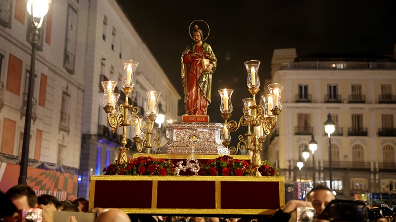 La presidenta de la Comunidad de Madrid, Isabel Díaz Ayuso, ha participado hoy en la procesión con la imagen de San Judas Tadeo, que ha recorrido las calles del centro de la capital tras salir de la Parroquia de Santa Cruz. La jefa del Ejecutivo regional quiso mostrar su apoyo a la profunda devoción que despierta el santo en Madrid, especialmente en el día de su festividad.