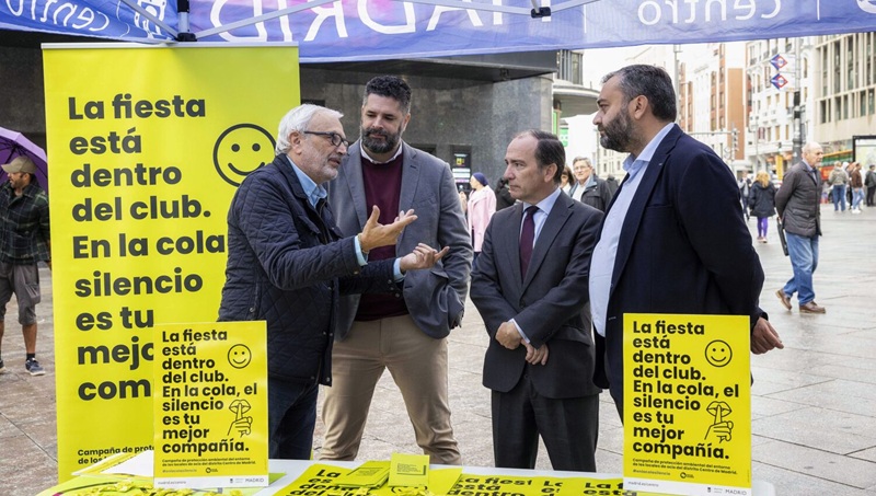 La puesta en marcha de la nueva campaña ‘En la cola, el silencio es tu mejor compañía’ (#enlacolasilencio), impulsada por el Ayuntamiento de Madrid y Noche Madrid, pretende marcar un punto de inflexión en la lucha contra el ruido nocturno.