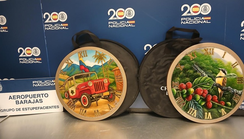 Junto con sus enseres personales, portaba dos relojes de pared de unos 23 centímetros de diámetro que desprendían un fuerte olor químico. Tras realizar el pertinente narcotest, se confirmó que dichos relojes ocultaban cocaína.