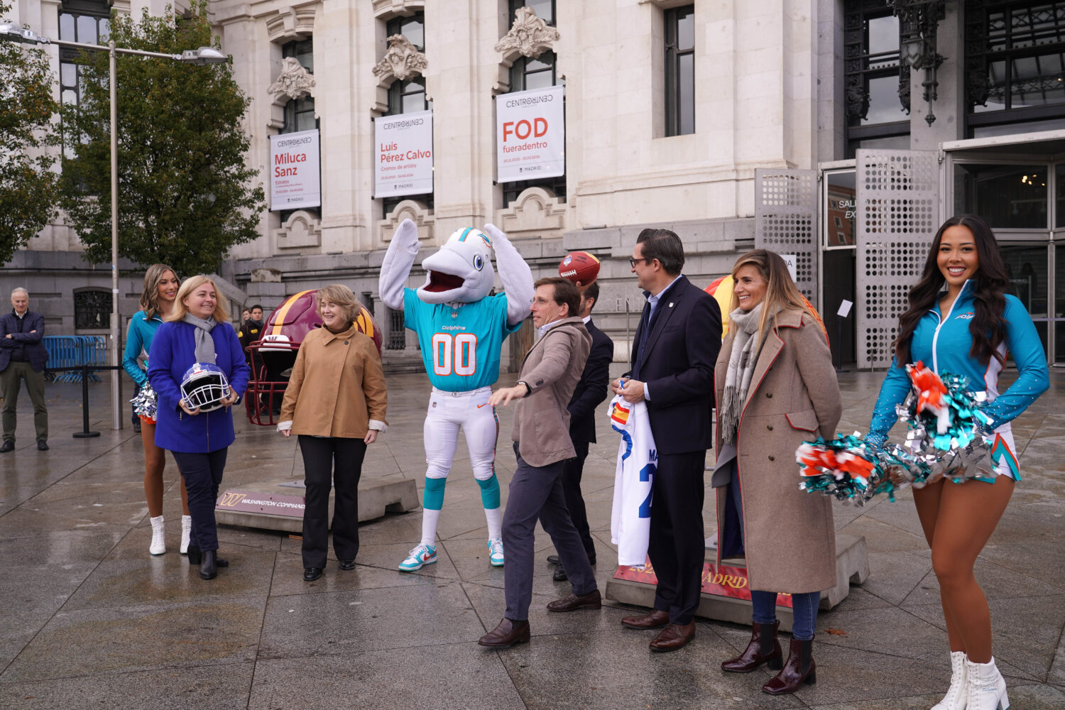 Como adelanto, esta mañana, el alcalde de Madrid, José Luis Martinez-Almeida, ha visitado la exposición de tres cascos gigantes representativos del partido, situados delante del Palacio de Cibeles, junto al director general y responsable internacional de la NFL, Gerrit Meier, y el director general de NFL España, Rafael de los Santos. Dos de los cascos se corresponden con los dos equipos protagonistas, Miami Dolphins y Washington Commanders, y el tercero conmemora el encuentro en Madrid.