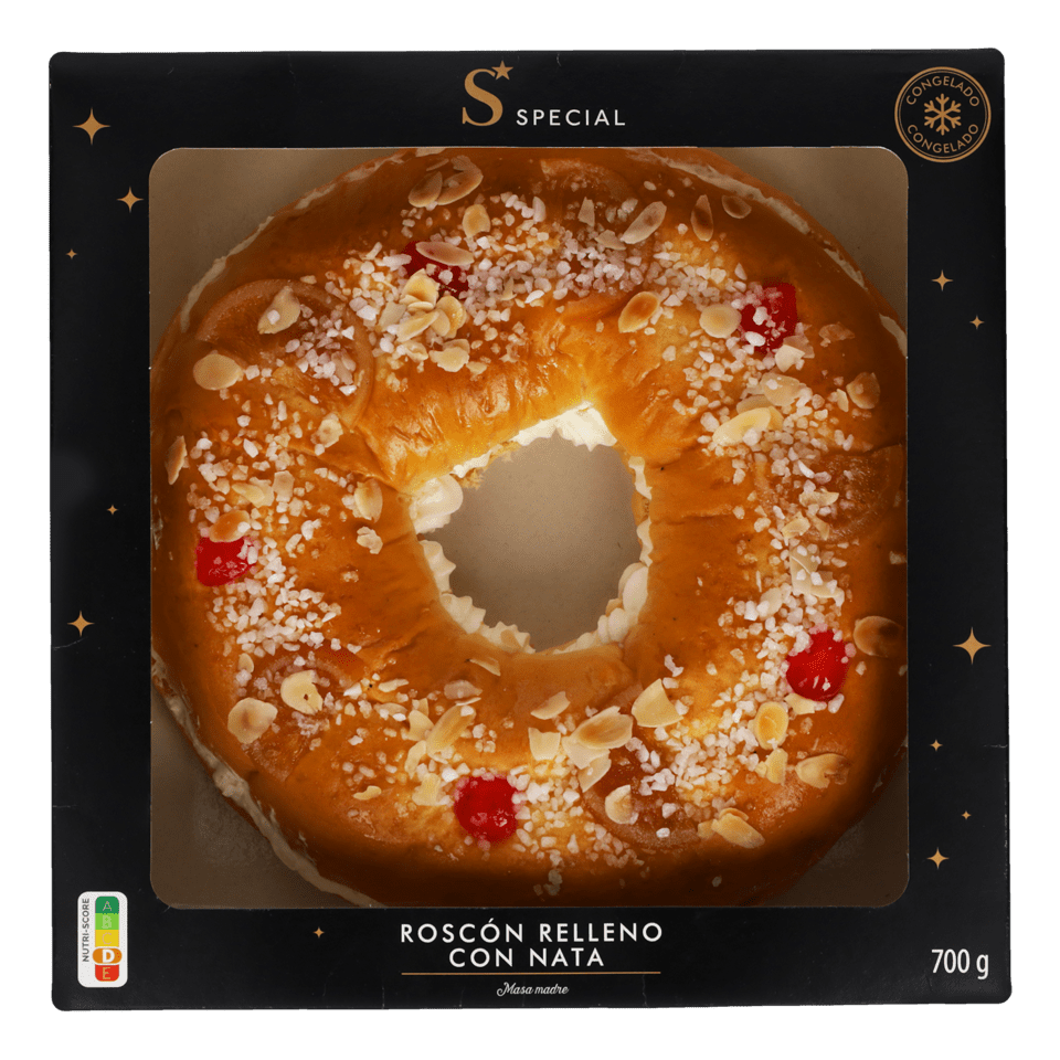 El nuevo roscón está preparado con mantequilla y masa madre, e incorpora agua de azahar y ralladura natural de naranja y limón, que aportan su característico sabor inconfundible. Respecto al año anterior, ALDI ha incluido un mayor porcentaje de nata en el relleno, más mantequilla en el bollo y menos aditivos. Como novedad, el producto también incorpora un film protector que ayuda a mantener su textura óptima por más tiempo.