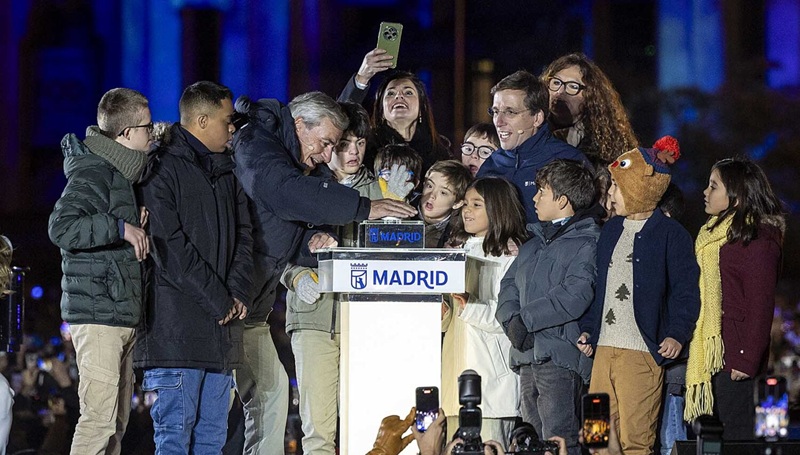 La iluminación navideña luce desde esta tarde en Madrid tras el acto oficial de encendido celebrado en la plaza de Cibeles. Desde allí, el alcalde de Madrid, José Luis Martínez-Almeida, y el bicampeón mundial de rally, Carlos Sainz, han dado la bienvenida a las fiestas y han accionado el pulsador que ha puesto en marcha el alumbrado de la ciudad.