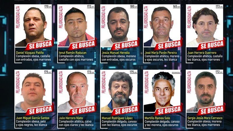Juan Miguel García Santos, de Vilanova de Arousa (Pontevedra), de 51 años. Buscado por tráfico de drogas, es considerado el cerebro de un entramado de narcotráfico gallego y está implicado en el envío de cocaína desde Ecuador camuflada en cargamentos de plátanos. Su complexión es obesa, tiene el cabello negro, piel blanca y ojos negros. Está considerado de alta peligrosidad.
