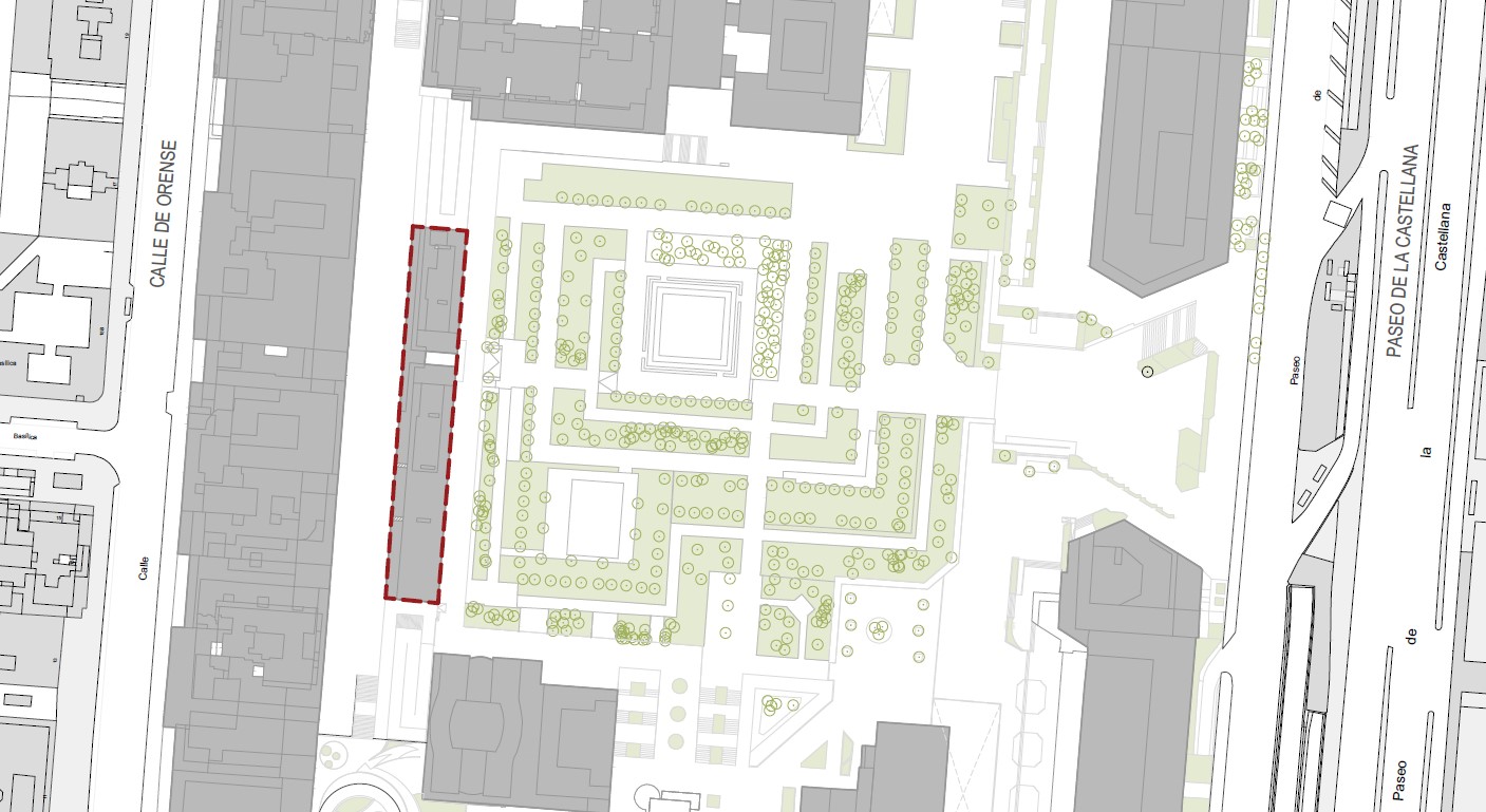 El complejo AZCA (Asociación Mixta de Compensación de la manzana A) se implanta en una supermanzana rectangular, configurando un tejido urbano singular. Su concepción urbanística, propia de la década de 1970, se caracteriza por la densificación de usos terciarios y la creación de un espacio público y privado a diferentes niveles. Muchos de los edificios que componen la manzana están siendo actualmente objeto de remodelación en el marco de la renovación y regeneración urbana de dicho complejo. Dentro de esta transformación de AZCA, se contempla el rediseño y la regeneración de los espacios que lo integran y una reestructuración integral de los flujos y accesos mediante la reconsideración de las circulaciones peatonales existentes, para garantizar una accesibilidad universal.