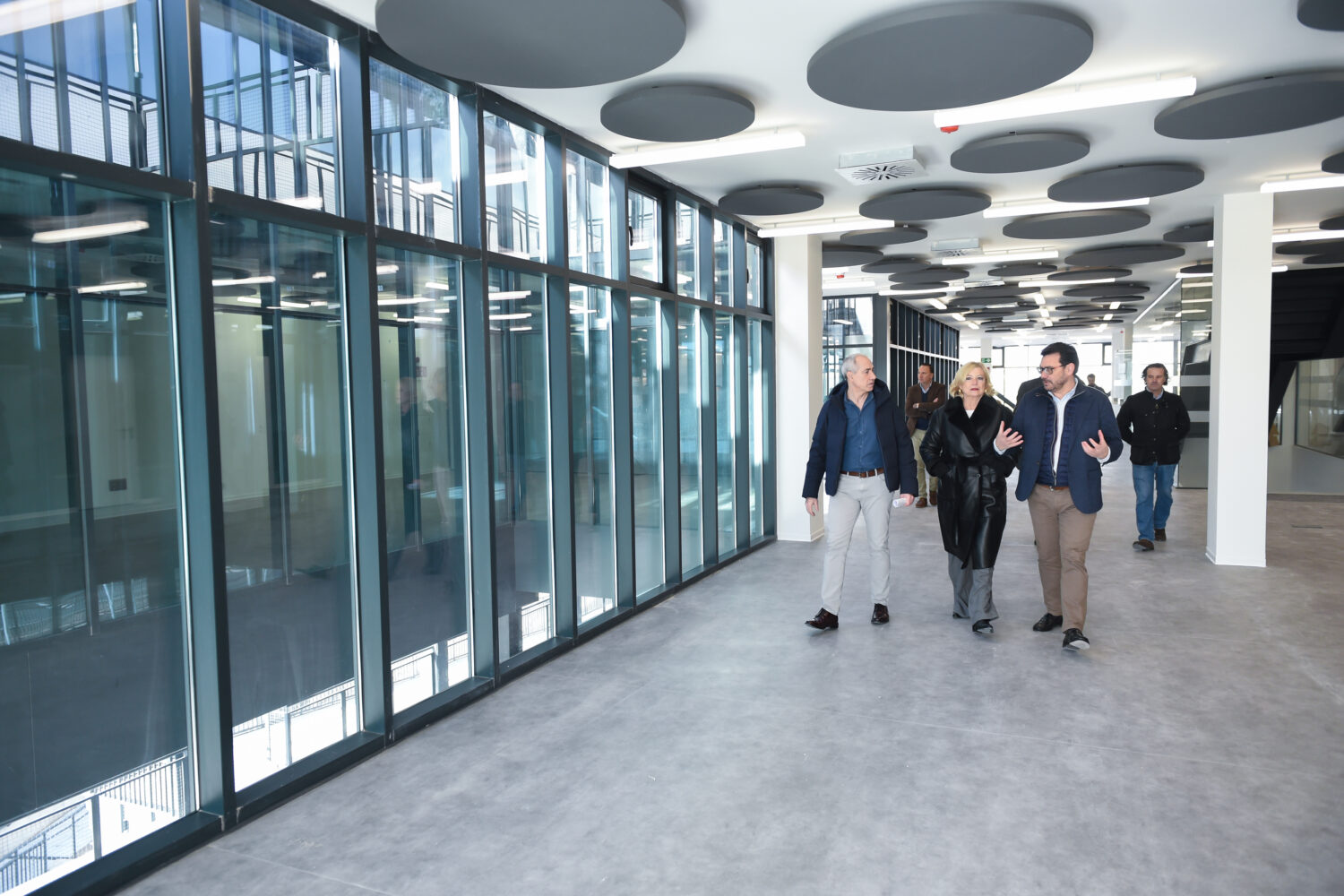 La delegada de Obras y Equipamientos, Paloma García Romero, acompañada por el concejal de Villa de Vallecas, Carlos González Pereira, ha visitado esta mañana el nuevo centro cultural con biblioteca que el Ayuntamiento acaba de construir en el Ensanche de Vallecas. La dotación, que ha supuesto una inversión de 7,8 millones de euros, se pondrá en funcionamiento en los próximos meses.
