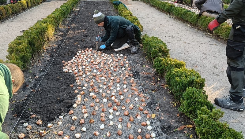 Cerca de 40.000 bulbos de tulipanes, narcisos, Muscari y jacintos ya se han plantado en la Terraza de los Cuadros, principalmente, junto a la entrada al invernadero Santiago Castroviejo y en otros puntos del Real Jardín Botánico-CSIC, aprovechando los primeros días de frío, para con su color, principalmente, y su fragancia dulce, floral y especiada, más en el caso de los jacintos, anuncien la llegada de la primavera.