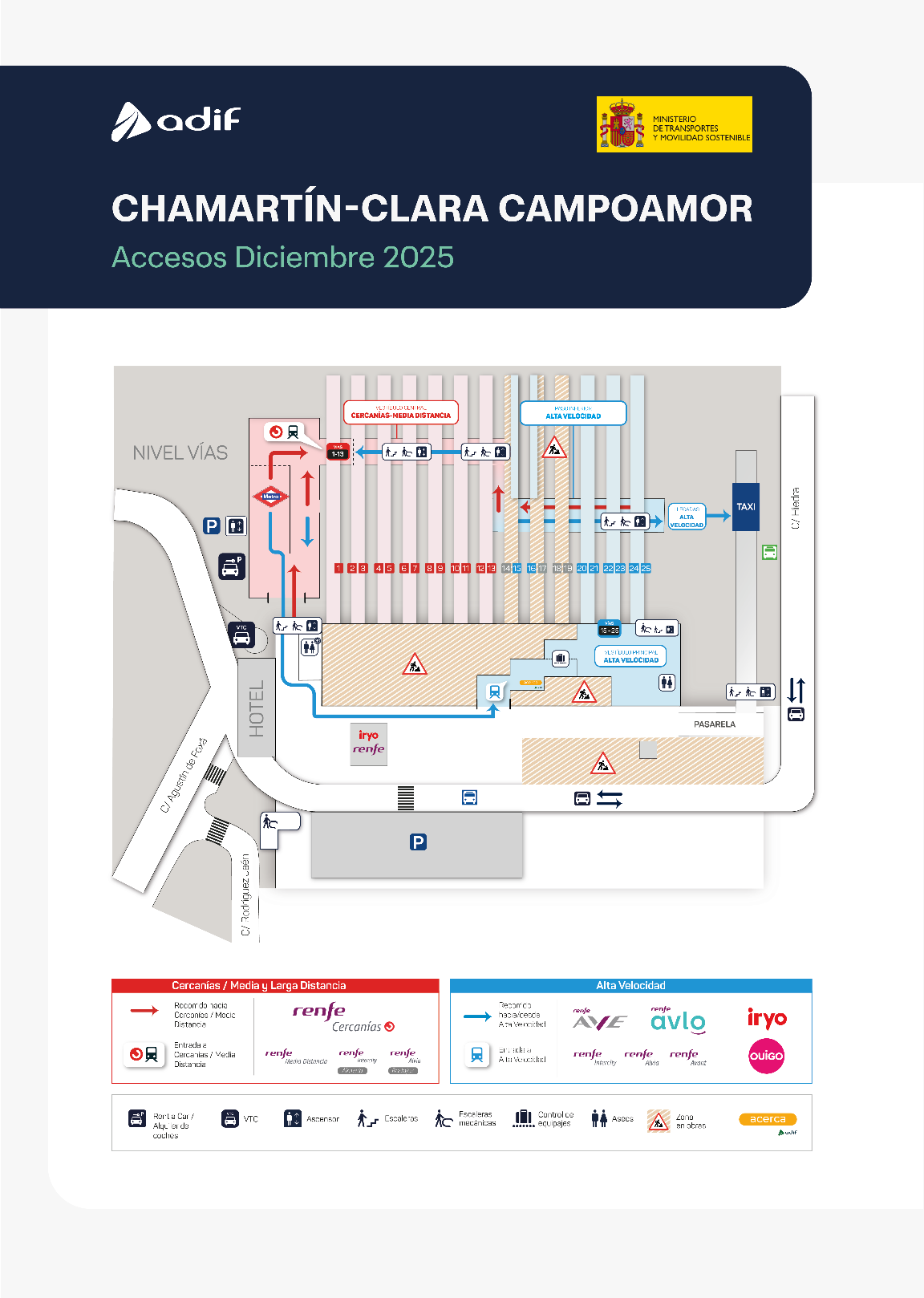 Toda la ampliación de la estación de Chamartín-Clara Campoamor se está realizando con el objetivo de aumentar la capacidad de los servicios de alta velocidad y mejorar la funcionalidad de la infraestructura, así como la experiencia de los usuarios, generando espacios más amplios, cómodos y luminosos. Por otra parte, el local de Acerca, el servicio de asistencia a personas con discapacidad o movilidad reducida que presta Adif, se ha trasladado a su ubicación definitiva en el interior del vestíbulo principal.